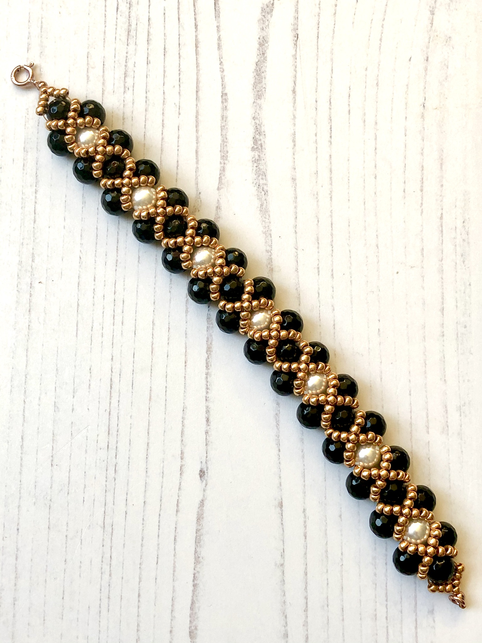Black Agate, Pearl and Swarovski Memory Bracelet
