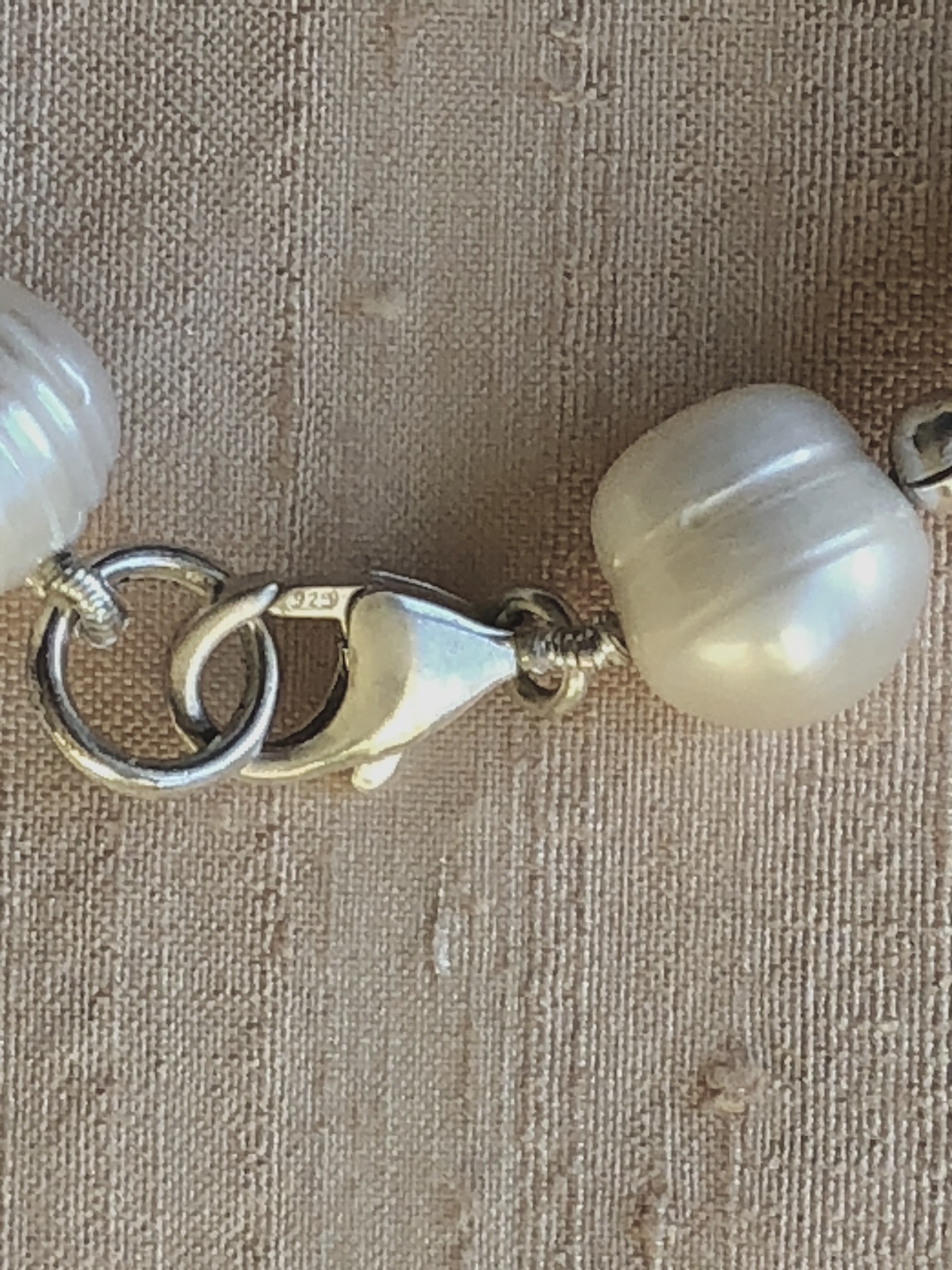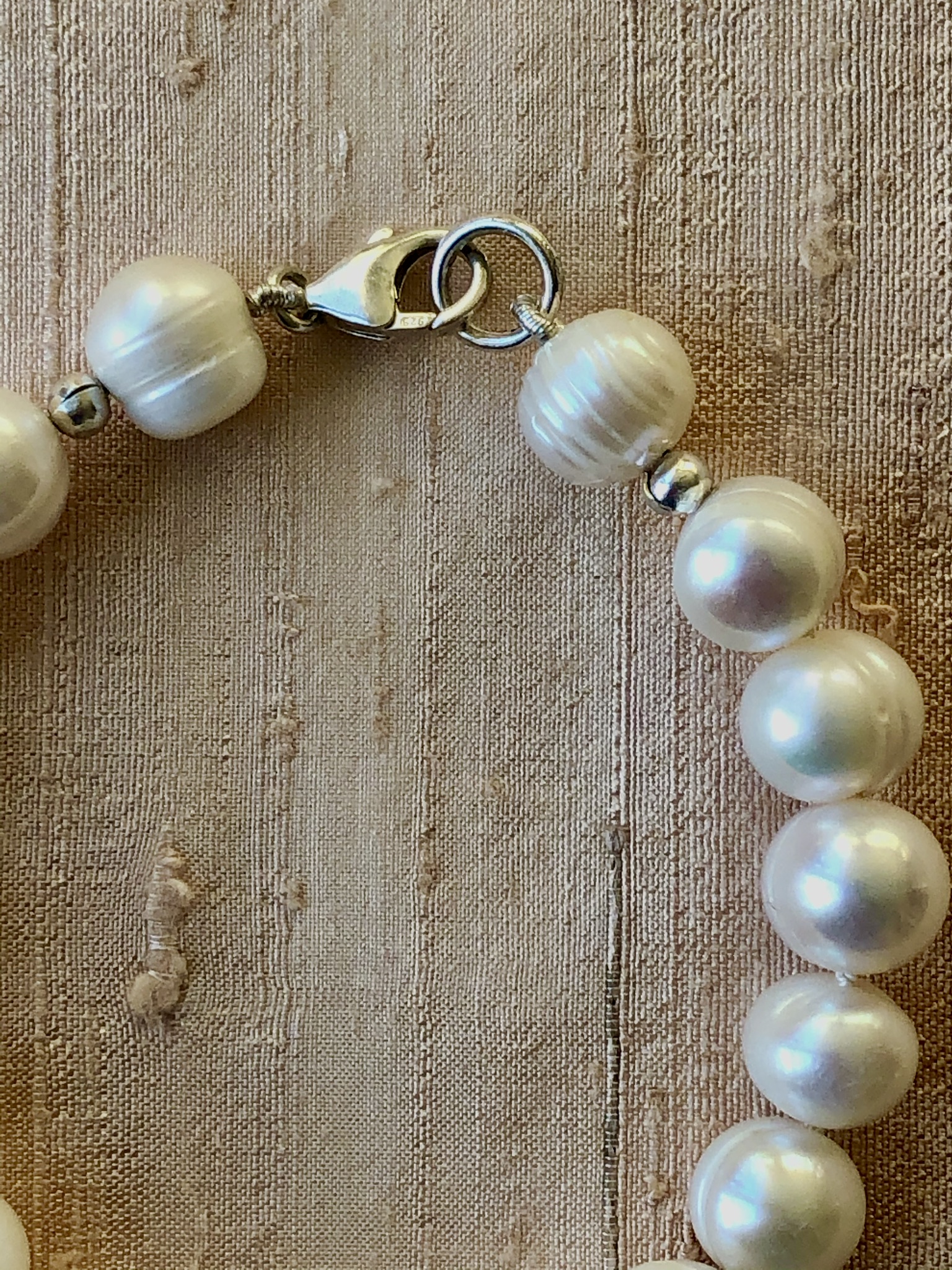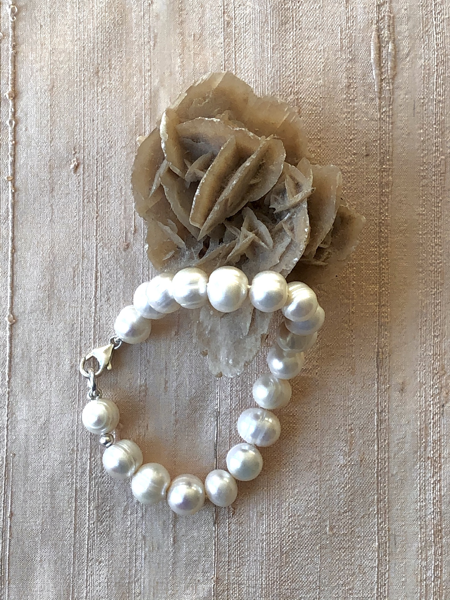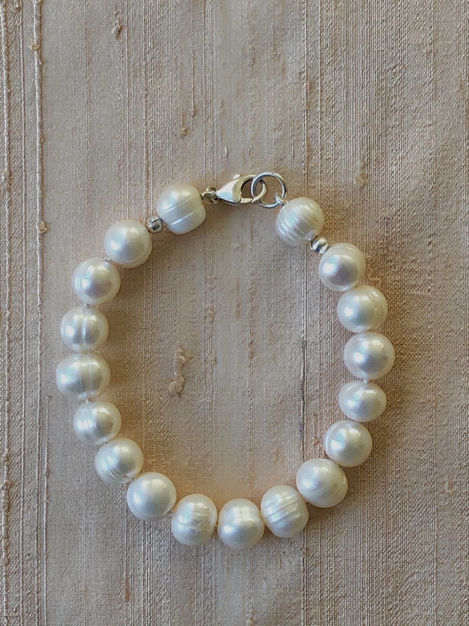 Hand knotted bracelet made from lustrous Freshwater Pearls (8-10mm).