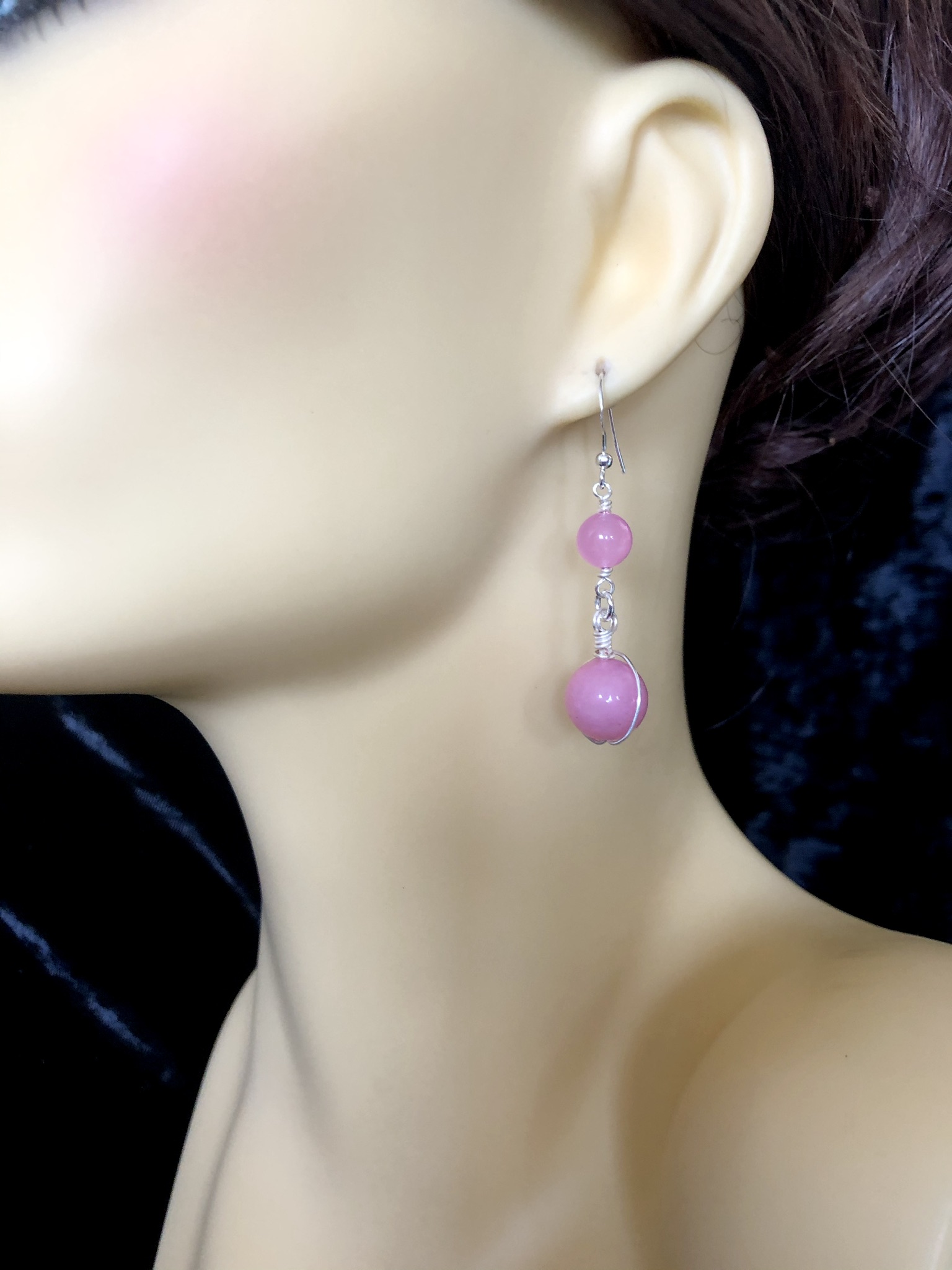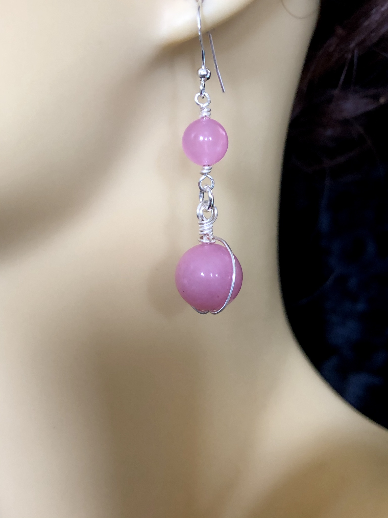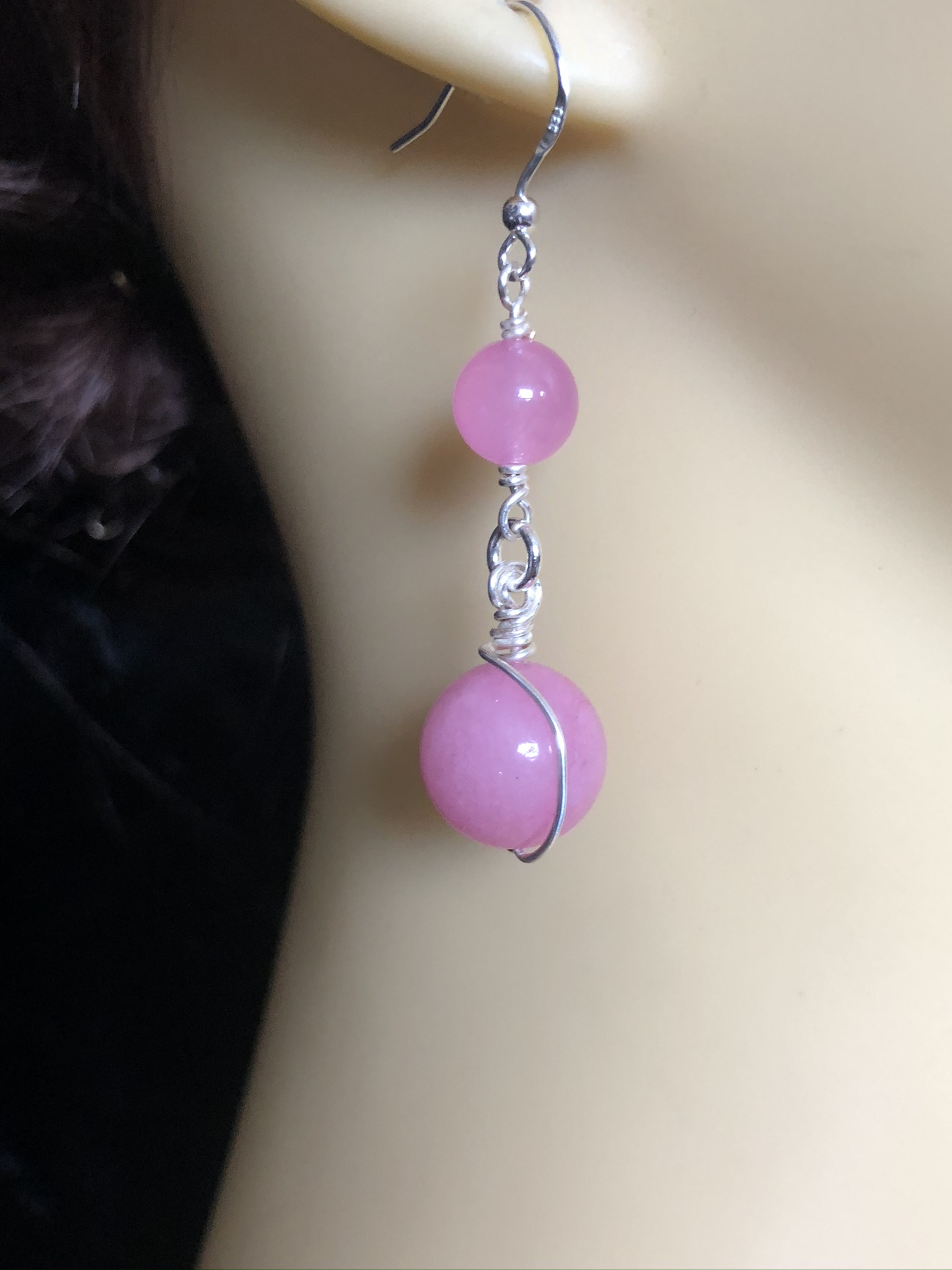 Pink Quartzite beads mounted onto 925 silver shepherds hooks.