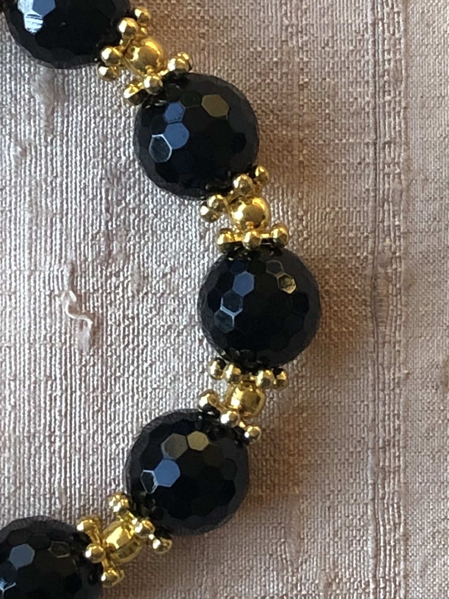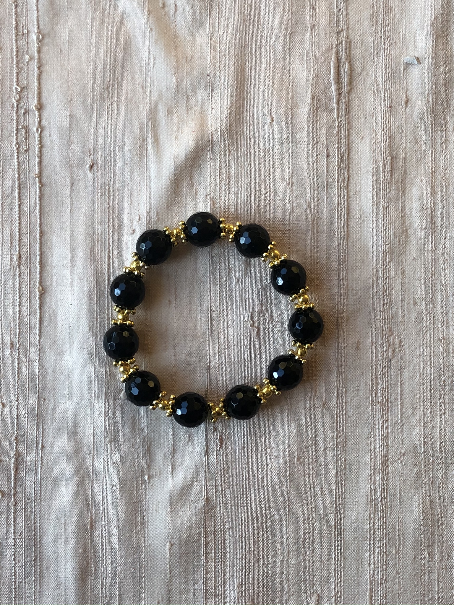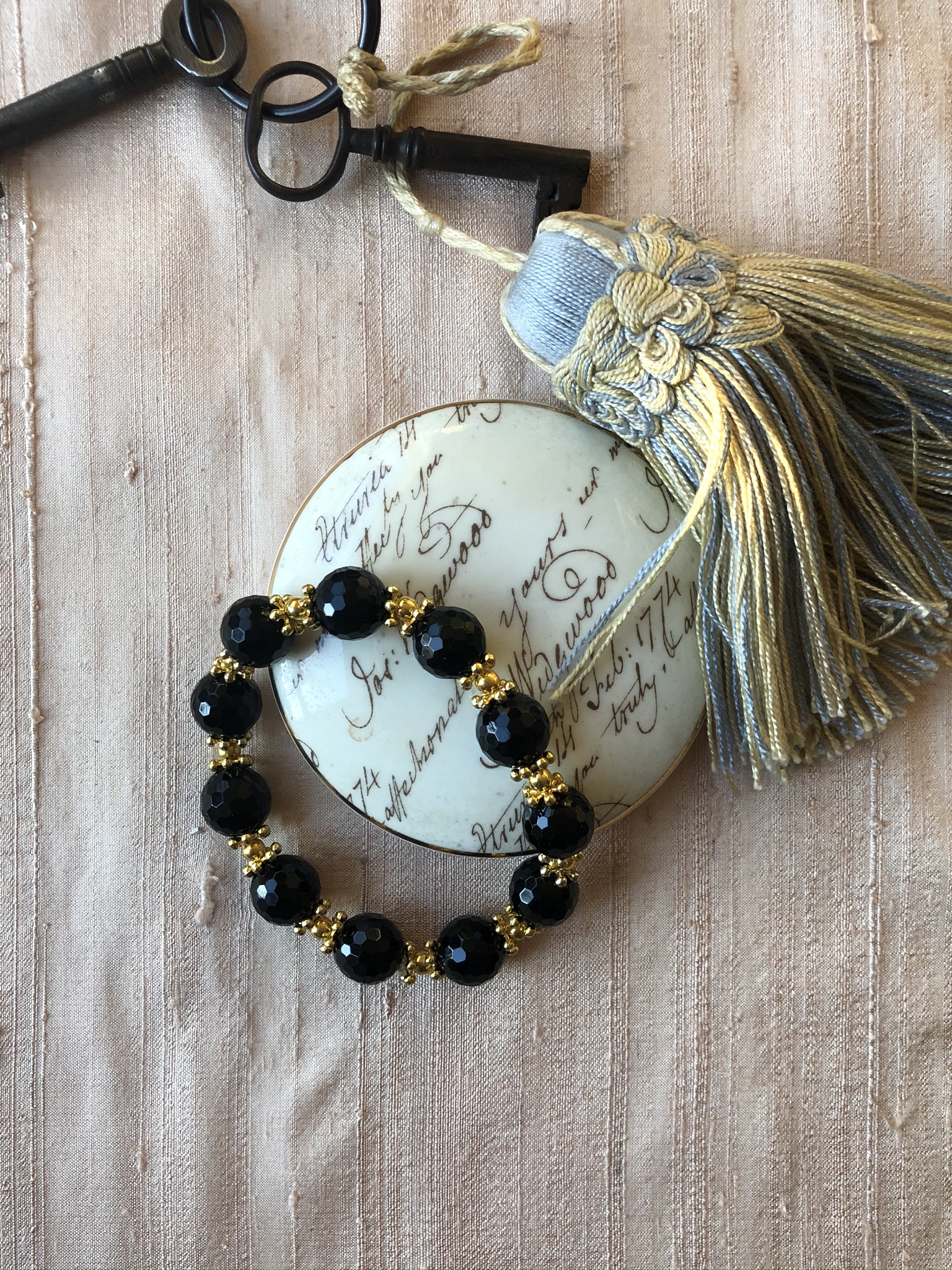 Black Agate, Pearl and Swarovski Memory Bracelet