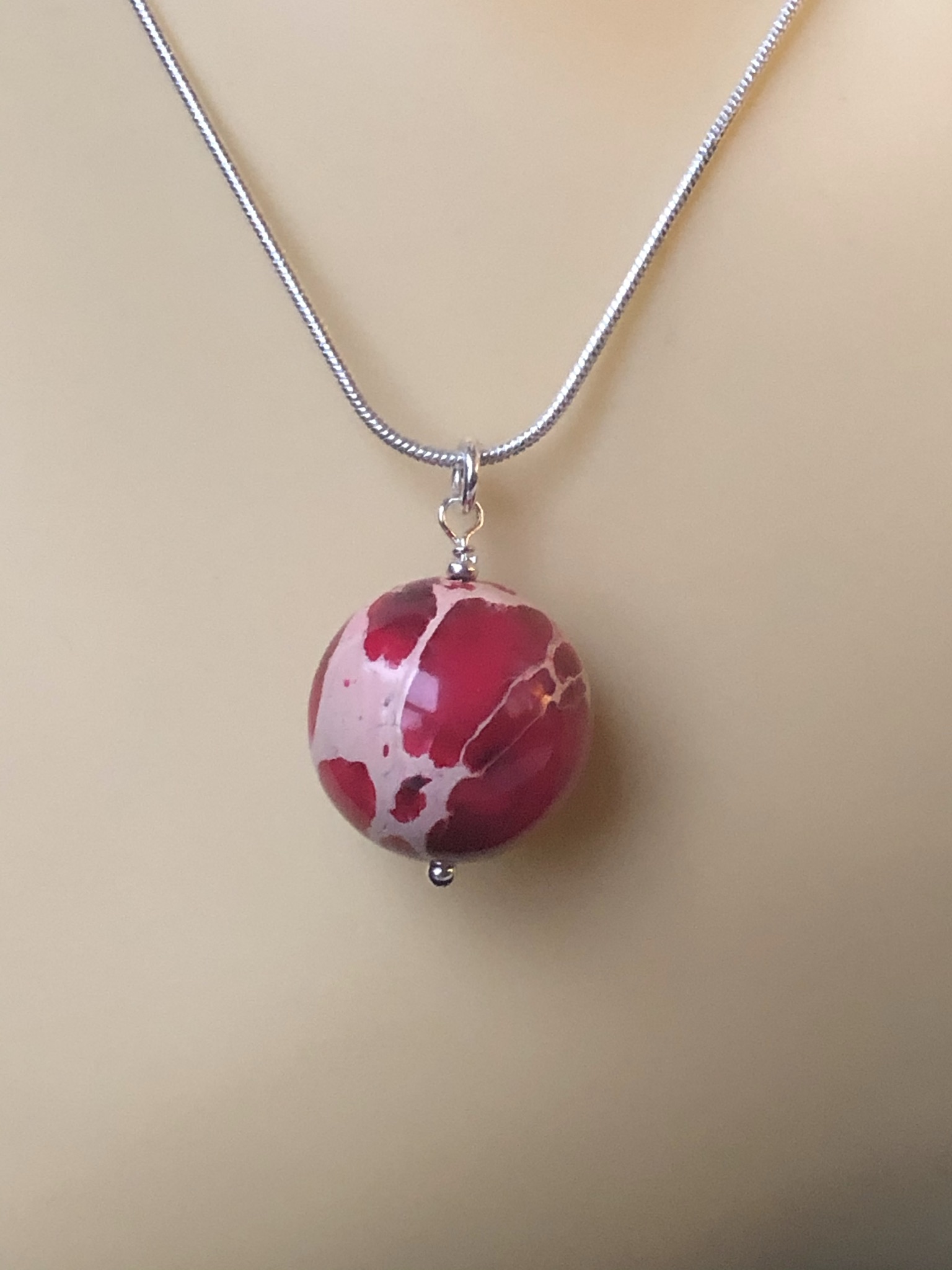 Red Terra Jasper Pendant and Silver Chain