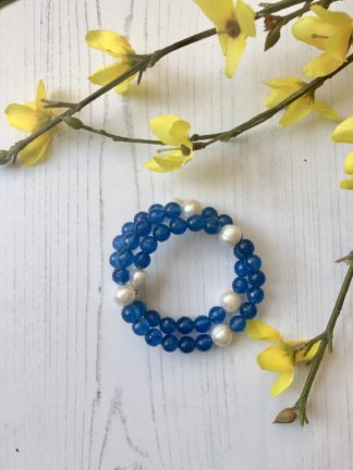 Blue Quartz and Pearl Memory Bracelet
