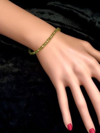 Bracelets made up of a single strand of gems, beads or pearls, either attached by a clasp mechanism or else mounted on strong jewellers’ elastic to make a ‘stretchy’.