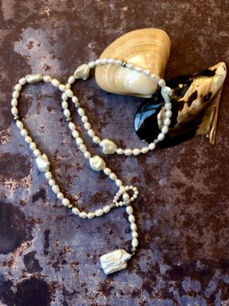 Lariat necklaces do not have a clasp. The gems, pearls, beads or chain form a long rope which can either be tied or else pulled through a circular finding thus giving different options of lengths.