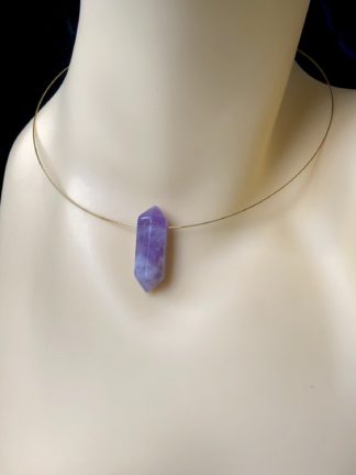 Amethyst Pencil Pendant Memory Wire Necklace