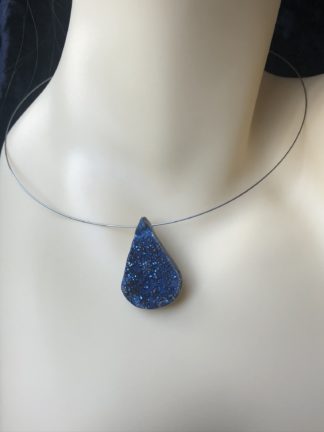 Druzy Agate Pendant Memory Wire Necklace