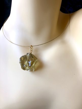 Rough Cut Citrine Pendant Memory Wire Necklace