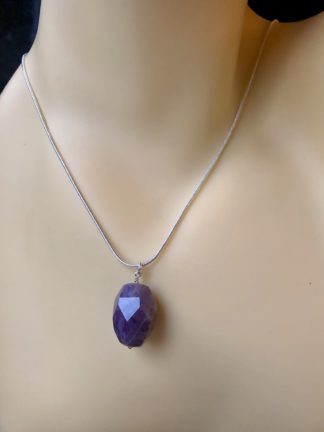 Rough Cut Amethyst Pendant Gold Tone Memory Wire Necklace